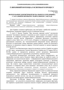 - Бережна, Т. І. (orcid.org/0000-0002-4626-6133) (2014) Формування здоров’язбережувального середовища у загальноосвітньому навчальному закладі In: Сучасний виховний процес: сутність та інноваційний потенціал (4). НАІР, м. Івано-Франківськ, Україна, pp. 324-326.