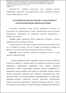 Foreign experience of the systems of professional studies and possibility of his use is considered in Ukraine. The ways of update of the didactic providing and effective co-operation of theoretical and industrial training are analysed.