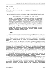 - Середа, Х.В. (orcid.org/0000-0002-4510-7173) (2014) Theoretical basis of informatization of management of scientific researches in the sphere of pedagogical sciences Інформаційні технології і засоби навчання, 4 (42). pp. 181-199. ISSN 2076-8184