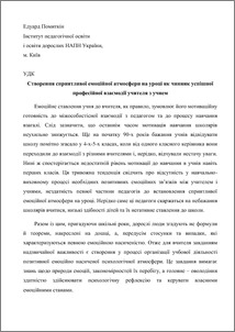 - Помиткін, Едуард Олександрович (2012) Creating a supportive emotional atmosphere in the classroom as a factor in successful professional teacher interaction with pupils Psychological and pedagogical problems of pedagogical action: Coll. sciences. works. pp. 318-328.