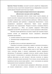 - Кравчина, О.Є. (2011) Основні напрями використання вільного програмного забезпечення в закладах освіти зарубіжжя. In: ЗВІТНА НАУКОВА КОНФЕРЕНЦІЯ Інституту інформаційних технологій і засобів навчання НАПН України . ІІТЗН НАПН України, Україна, pp. 22-24.