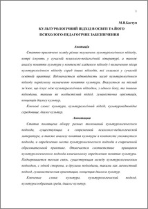 - Бастун, Микола Володимирович (2012) Культурологічний підхід в освіті та його психолого-педагогічне забезпечення Горизонти освіти, 3 (2) (36). pp. 170-175.