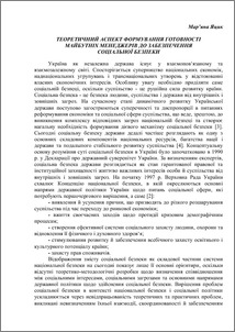 In theses argues that the problem of social security and an optimal strategy to ensure it is in the inseparable unity of European integration and globalization guidelines, which in turn requires the use of balanced scientific and policy approaches. Therefore, in the training of future managers, it is important to form their readiness for social security society on the basis of relevant information and methodological support.