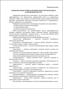 The thesis argues that a professionally-important as a manager of banking services can be attributed, first of all: organizational skills, ability to establish business contacts, positively adjust to his people. Modern techniques of communicative qualities of the manager is the creation of communicative situations, which ran to the mechanisms of the respective competencies helping to quickly adapt to any professional situation, promoting networking, empowerment impact on the bank's clients.