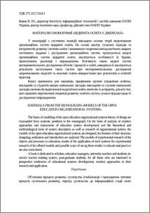 The bases of modeling of the open education organizational systems theory of design are expounded from systemic positions in the monograph. On the basis of analysis of modem approaches and instruments of education system development and the theoretical and methodological tools of system description as well as research of organizational system, the models of the open education organizational systems are designed, the features of their structure, designing, realization and introduction are analysed. The models of experimental research of the objects and processes in education, results of the application of such systems for experimental research of the offered models and possible ways of using these results in educational practice are also considered. A book is dedicated to scholars, education managers, university teachers and students, in-service teacher training system, post-graduate students, for all those who are interested in prospective tendencies of educational systems development, modem approaches to their research and application.