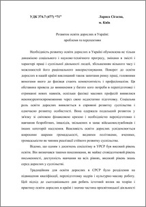 - Сігаєва, Лариса Євгеніївна (2012) Development of adult education in Ukraine: problems and prospects Adult education: theory, experience and prospects (5). pp. 60-68. ISSN 978-966-2748-22-3