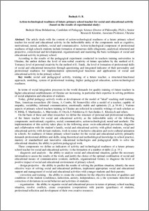 The article deals with the content of action-technological readiness of a future primary school teacher for social and educational activity in the indissoluble unity of the components such as cognitive, motivational, moral, aesthetic, social and communicative. Action-technological component of professional readiness of high schools students include formation of numerous skills (diagnostic, analytical, structural and projective, correctional and developmental, organizational) and mastering the basic techniques of social and educational activity in primary school. According to the results of the pedagogical experiment conducted in teachers training universities in Ukraine, the author defines the level of non-verbal creativity of future specialists by the method of E. Torrance; level of personal creativity by the method of E. Tunik , the level of formation of professional skills of social and educational interaction through questioning and integrated indicator of their personality and professional readiness for implementation epistemological functions and applications of social and educational activity in the primary school.