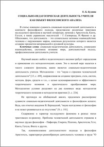 - Будник, О.Б. (2013) Social and pedagogical activity of a teacher: philosophical aspect Отечественная и зарубежная педагогика (6). pp. 13-25. ISSN 2224-0772