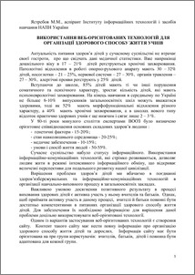 Актуальність питання здоров’я дітей у сучасному суспільстві не втрачає своєї гостроти, про що свідчать дані медичної статистики. Для виховання здорових дітей необхідна активна участь вчителів та батьків, які повинні бути достатньо компетентними в питаннях організації здорового способу життя дітей. Для забезпечення їх необхідною інформацією для вирішення даної проблеми доцільно використовувати веб-орієнтовані технології.