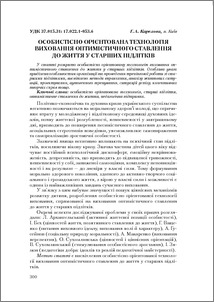 The article reveals the personality-oriented technology of education of optimistic attitude towards life in older adolescents. Personality-oriented technology provides the recognition of the child as the highest value, the unity of purpose, content, forms and methods of education of optimistic attitude towards life, the impact on the minds, feelings and behavior of pupils, organic combination of pedagogical influence of external and self-identity, subject-subject interaction of all participants in the educational process (families, schools, media, etc.), the interconnection of academic, extracurricular and school activities, pupils’ involvement in practice through specific educational measures. Рicular attention is paid to the organization peculiarities of the training «I Love Life» with the older teens that covers reposition methods, analysis of life situations, designing, autogenous training, management success, partnership and creativity, etc.