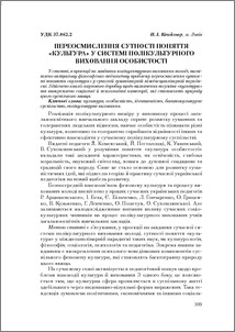 - Кендзьор, П.І. (2013) Reconsideration of the Notion «Culture» in the System ofMulticultural Education of the Personality Теоретико-методичні проблеми виховання дітей та учнівської молоді , 1 (17). pp. 309-318. ISSN 978-966-189-209-4