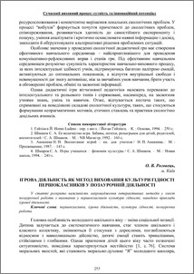The article deals with the importance of the introduction of interactive methods in content overtime work of education in the culture first-esteem, are examples of playing activity.