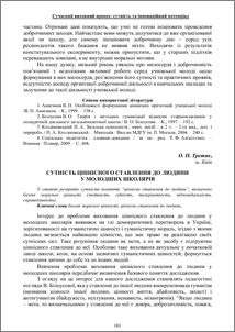- Третяк, О.П. (orcid.org/0000-0002-1160-055X) (2013) The essence of value to human beings in primary school children In: Сучасний виховний процес: сутність та інноваційний потенціал матеріали звіт. наук.-практ. конф. Ін-ту проблем виховання НАПН України за 2012 рік (3). НАІР, м. Івано-Франківськ, Україна, pp. 181-184.