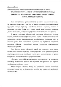 - Осіпа, Людмила Володимирівна (2007) Practical work on the topic «Machine translation» with the use of software suite Proling Office Інформатика та інформаційні технології в навчальних закладах, 6 (12). pp. 10-15.