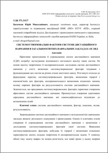 - Богачков, Ю.М. (2011) System-forming factors of distance education in general educational establishments: review Інформаційні технології і засоби навчання, 6 (26). ISSN 2076-8184