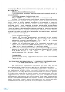 - Ткаченко, В.А. (2014) Instructional materials on statistical processing sites using Google Analytics In: Звітна наукова конференція Інституту інформаційних технологій і засобів навчання НАПН України : Матеріали наукової конференції . ІІТЗН НАПН України, м.Київ, Україна, pp. 111-117.