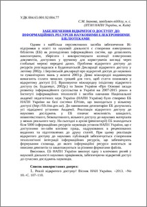 - Іванова, С.М. (2014) Providing of open access to the informative resources scientific of digital libraris In: Науково-практична конференція «Мультимедійні технології в освіті та інших сферах діяльності» 12-13 листопада 2014 . Національний авіаційний університет, м.Київ, Україна, p. 31.