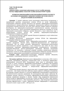 - Іванова, С.М. (2014) Development of researchersinformation and communication competence with the use of EPrints (pedagogical experiment) Інформаційні технології в освіті (19 ). pp. 80-92.