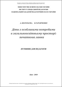 Колупаєва, А.А. (orcid.org/0000-0002-4610-5081) and Таранченко, О.М. (2010) Children with special needs in general educational space: the initial link . "АТОПОЛ", м.Київ, Україна. ISBN 978-966-2459-06-7