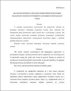 Dialogical forms and methods of professional training of pedagogs in the context of developping the pupils' spiritual pitential