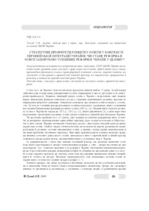 Based on the results of the nationwide representative surveys conducted by ISPP of NAPS of Ukraine paper reflects the citizens’ views on the situation in the area of education and its evaluation. Given analysis serves as an interpretative filter of the educational system modern transformation, including the factors hindering its integration into the European educational space, and strategic priorities of its development in the context of European integration of Ukraine.