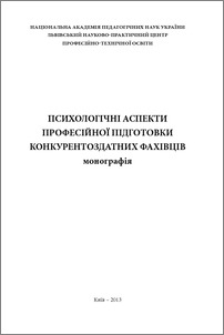 In the monograph highlights the issues of youth and vocational guidance of psychological services vocational education, socio-psychological basis of training future professionals for professional and psychological foundations of educational interaction in the process of training based on axiological approach, psychological and pedagogical conditions of emotional competence of professionals professions "man - the man"; reveals the psychological and pedagogical nature and culture of communication priority of its development in the future specialists in the training; psychological aspects of information and communication technologies in interactive learning.