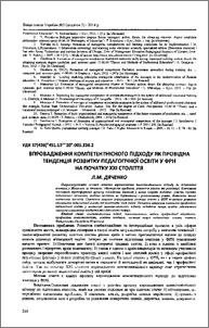 - Дяченко, Л.М. (2014) Впровадження компетентнісного підходу як провідна тенденція розвитку педагогічної освіти у ФРН на початку XXI століття Вища освіта України.«Педагогіка вищої школи: методологія, теорія, технології»., Toм 2. pp. 244-248. ISSN 2078-1016