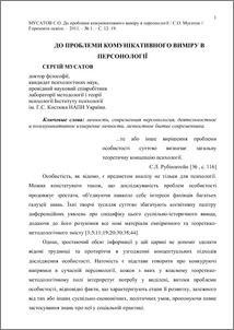 - Мусатов, Сергій Олександрович (2011) До проблеми комунікативного виміру в персонології Горизонти освіти. pp. 12-19.