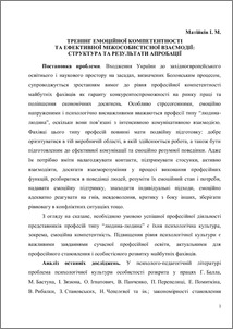 - Матійків, І.М. (2014) Emotional competence and effective interpersonal interaction training: structure and results approbation Scientific notes of the Ukrainian Catholic University, Вип.1. pp. 274-285.