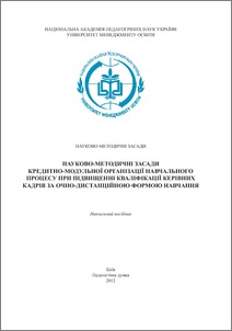 Олійник, В.В., Гравіт, В.О. and Ляхоцька, Л.Л. (2012) Scientific-methodical base of credit-module organization of curricula for improvement of qualification skills of managerial staff of full-time and distance forms of study . Університет менеджменту освіти НАПН України, "Педагогічна думка", м.Київ, Україна. ISBN 978-966-644-279-9