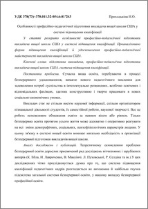 - Приходькіна, Н.О. (2012) Features of vocational teacher's training of high school teacher in US Тематичний збірник праць Всеукраїнської науково-практичної конференції з теми "Діяльність районних (міських) методичних кабінетів в умовах упровадження державних освітніх стандартів та інформаційно-комунікаційних технологій" (1). pp. 294-298. ISSN 978-966-2254-55-7