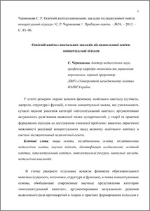 - Чернишова, Є.Р. (2013) Educational capital educational establishment: conceptual approaches Проблеми освіти (76). pp. 85-96.