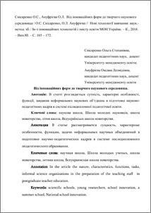 - Ануфрієва, О.Л. and Снісаренко, О.С. (2014) From innovative forms of creative scientific environment Нові технології навчання, 80. pp. 165-172.