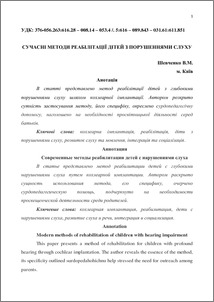 - Шевченко, В.М. (orcid.org/0000-0003-0119-3206) (2013) Modern methods of rehabilitation of children with hearing impairment Освіта осіб з особливими потребами: шляхи розбудови (4). pp. 95-102. ISSN 978-966-189-232-2