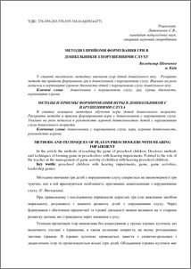 In the article the methods of teaching the game of preschool children. Discloses methods and techniques of forming game in preschoolers with hearing impairments. Pointed to the role of the teacher in the management of game activity of children with hearing preschool children.