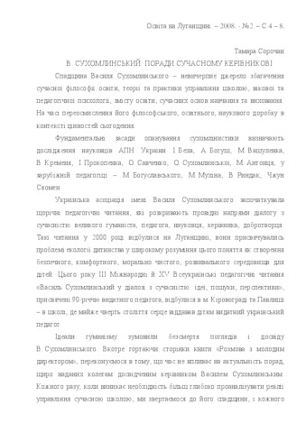 - Сорочан, Т.М. (2008) V. Sukhomlinsky: Tips modern manager Освіта на Луганщині, 2. pp. 4-8.