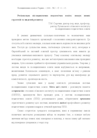 - Сорочан, Т.М. (2008) Regional postgraduate teacher education: finding new strategies and models of development Післядипломна освіта в Україні, 2. pp. 11-15.