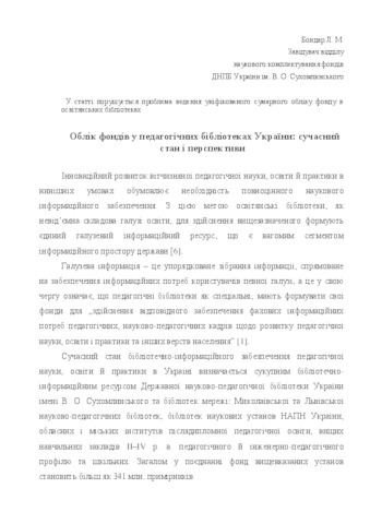 - Бондар, Людмила Миколаївна (2014) Accounting for funds in the educational library of Ukraine: Current State and Prospects Бібліотечний форум України, 1 (43). pp. 22-27. ISSN 1811-377X