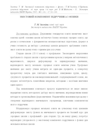 - Засєкіна, Тетяна Миколаївна (orcid.org/0000-0001-9362-5840) (2010) Content component of the physics textbook Проблеми сучасного підручника (10). pp. 301-309.