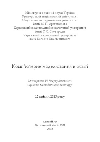 - Стрюк, М.І. (2013) European Learner Mobility model In: Комп’ютерне моделювання в освіті: матеріали VІ Всеукраїнського науково-методичного семінару (Кривий Ріг, 12 квітня 2013 р.) . Видавничий відділ КМІ, м. Кривий Ріг, Україна, pp. 37-38.