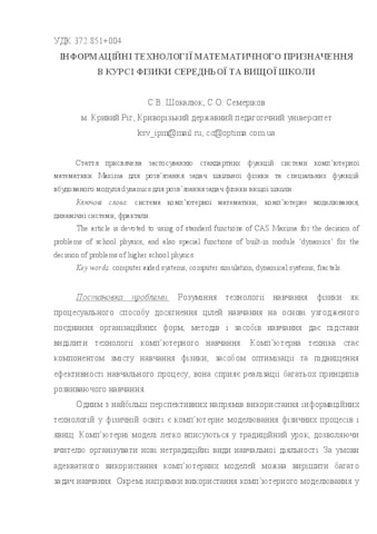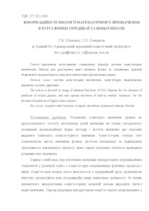 - Семеріков, С.О. and Шокалюк, С.В. (2008) mathematical Information technology in the physics course secondary and higher schools Збірник наукових праць Кам’янець-Подільського національного університету: Серія педагогічна, 14. pp. 108-113.