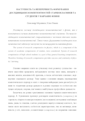 - Мерзликін, О. В. and Єчкало, Ю.В. (2014) Success and continuity of pupils and students research competencies forming in physics learning Наукові записки, 6. pp. 81-86.