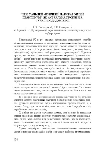 - Семеріков, С.О. and Теплицький, І.О. (2004) "Virtual physics laboratory practice" as an actual problem of modern didactics Теорія та методика навчання математики, фізики, інформатики, 2 (4).