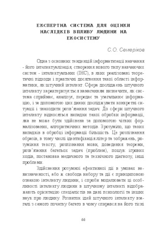 - Семеріков, С.О. (1997) Expert system for assessing the effects of humans on the ecosystem Охорона довкілля: екологічні, освітянські, медичні аспекти: матеріали Всеукраїнської конференції, 1 (2).