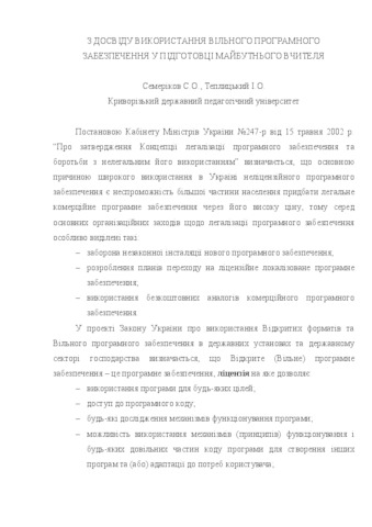 - Семеріков, С.О. and Теплицький, І.О. (2003) The experience of the use of Free Software in preparing future teachers Рідна школа, 5 (5).