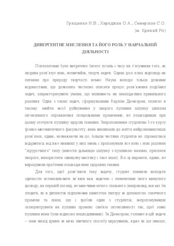 - Семеріков, С.О., Хараджян, О.А. and Грищенко, Н.В. (1998) Divergent thinking and its role in training activities Сучасна трудова та професійна підготовка шкільної молоді, 1 (1).