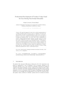 The rapid development of cloud services and their implementation in secondary education require an increase in the IC-competence of teachers during non-formal education. The implementation of cloud services will make it possible to create some conditions for learning mobility of all participants of teaching and learning activities. This article deals with the organization of teachers’ training during non-formal learning. The paper analyzes the main forms of the organization of teachers’ learning (workshops, trainings and summer schools). The special features of the non-formal teachers’ ICT training include the availability of high-speed Internet and some computer equipment. The obtained basic and additional services allow teachers to make the extensive use of cloud services for different activities, namely the organization of students’ group work and “inverted learning”; team-work on projects, assistance during homework; preparation for contests; conducting web-quests.
