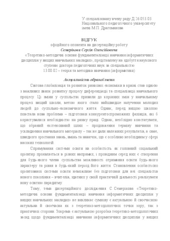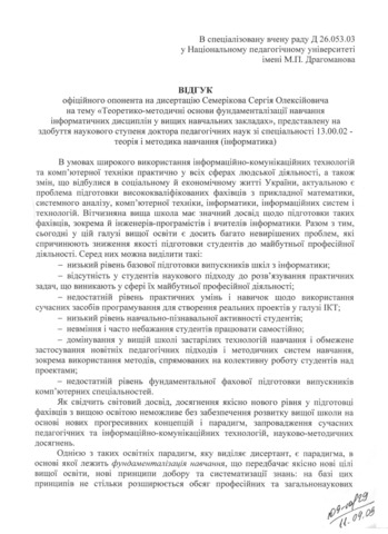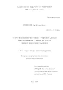 - Семеріков, С.О. (2009) Theoretical and methodic foundations of fundamentalization teaching of the Computer Science at the high educational institutions Masters thesis, Національний педагогічний університет імені М. П. Драгоманова.