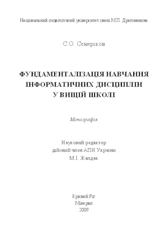 - Семеріков, С.О. (2009) Fundamentalization of Computer Science teaching at the high educational institutions Project Report. Мінерал, НПУ ім. М.П. Драгоманова, м. Кривий Ріг, м. Київ, Україна.