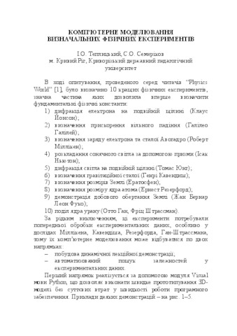 - Семеріков, С.О. and Теплицький, І.О. (2007) Computer modeling of the defining physical experiments In: Комп’ютерне моделювання та інформаційні технології в науці, економіці та освіті , 1 (1). КЕІ ДВНЗ «КНЕУ ім. В. Гетьмана», м. Кривий Ріг, Україна.